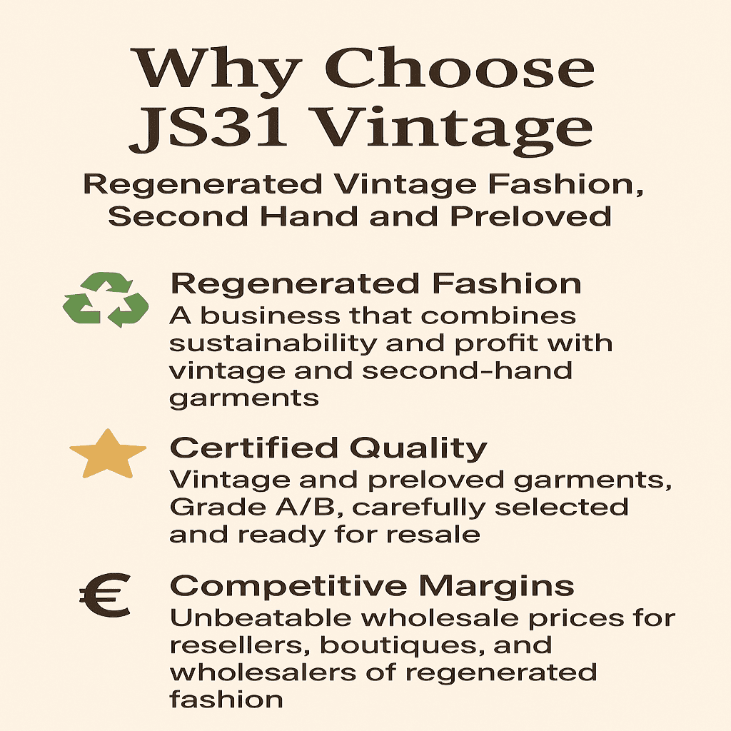 Second-hand and regenerated stock ready for vintage shops, boutiques, and distributors.